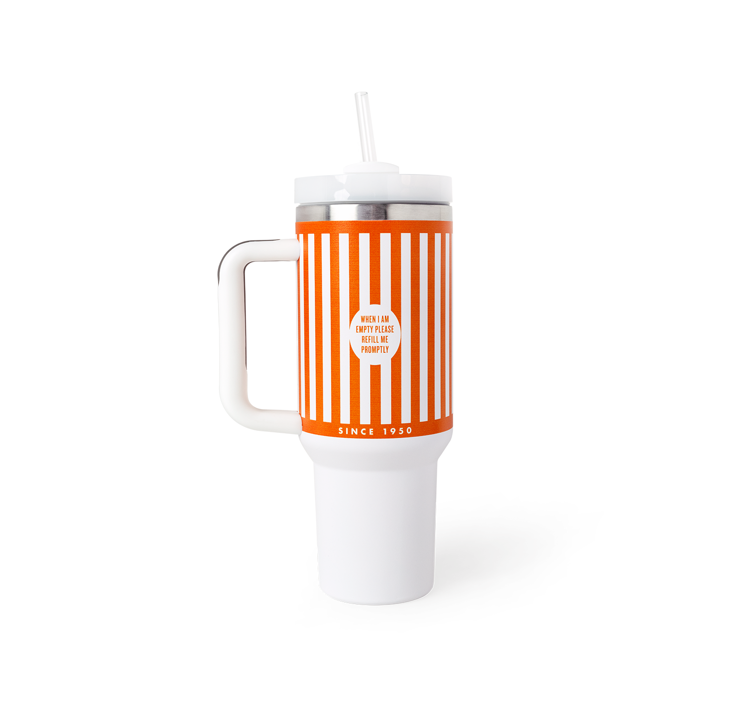 Quench your thirst in style with our 40oz Striped Tumbler! This fun and quirky tumbler not only holds a whopping 40oz of your favorite beverage, but also comes with a handle for easy carrying and a lid and straw for spill-free sipping. Plus, with its design inspired by the iconic Whataburger cup, you’ll be sure to turn heads and make a statement.