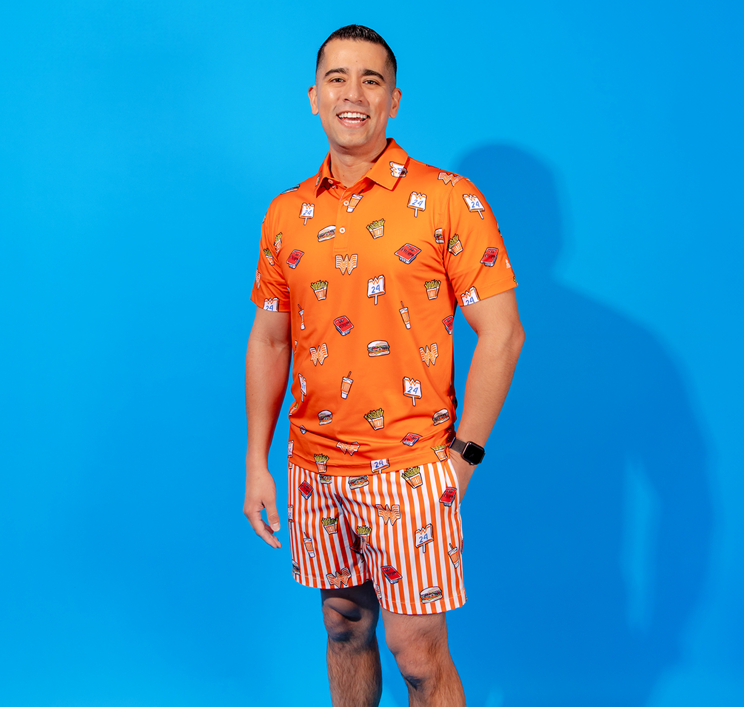 Make a splash in these playful Chubbies® Striped Swim Trunks! Featuring iconic Whataburger symbols and bright orange and white stripes, these swim trunks are sure to turn heads. Dive in and stand out with these fun and quirky swim trunks!
