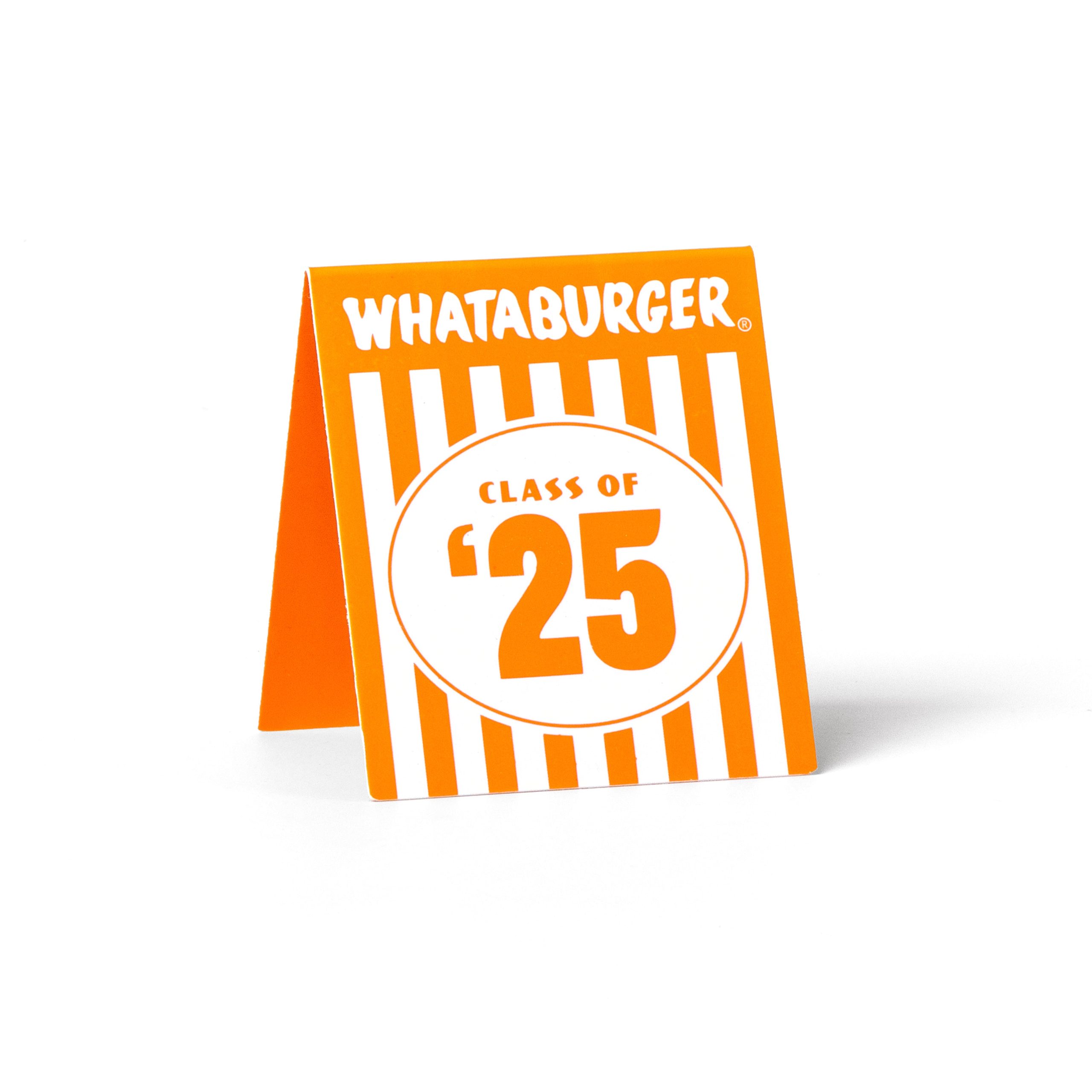 Congratulations Seniors! Celebrate your big year (and all those visits you made to Whataburger…) with a commemorative Class of ’25 Table Tent.