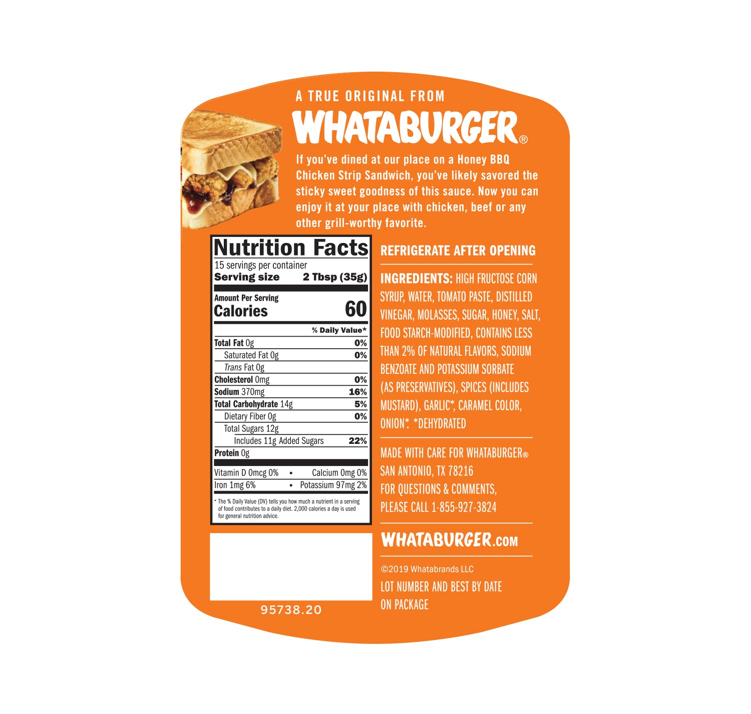 It’s the flavor made famous on the Honey BBQ Chicken Strip sandwich. And now you can try it on all your homemade favorites. The sweet, tangy goodness of this Whataburger original is a great way to add a tasty touch to chicken or beef.