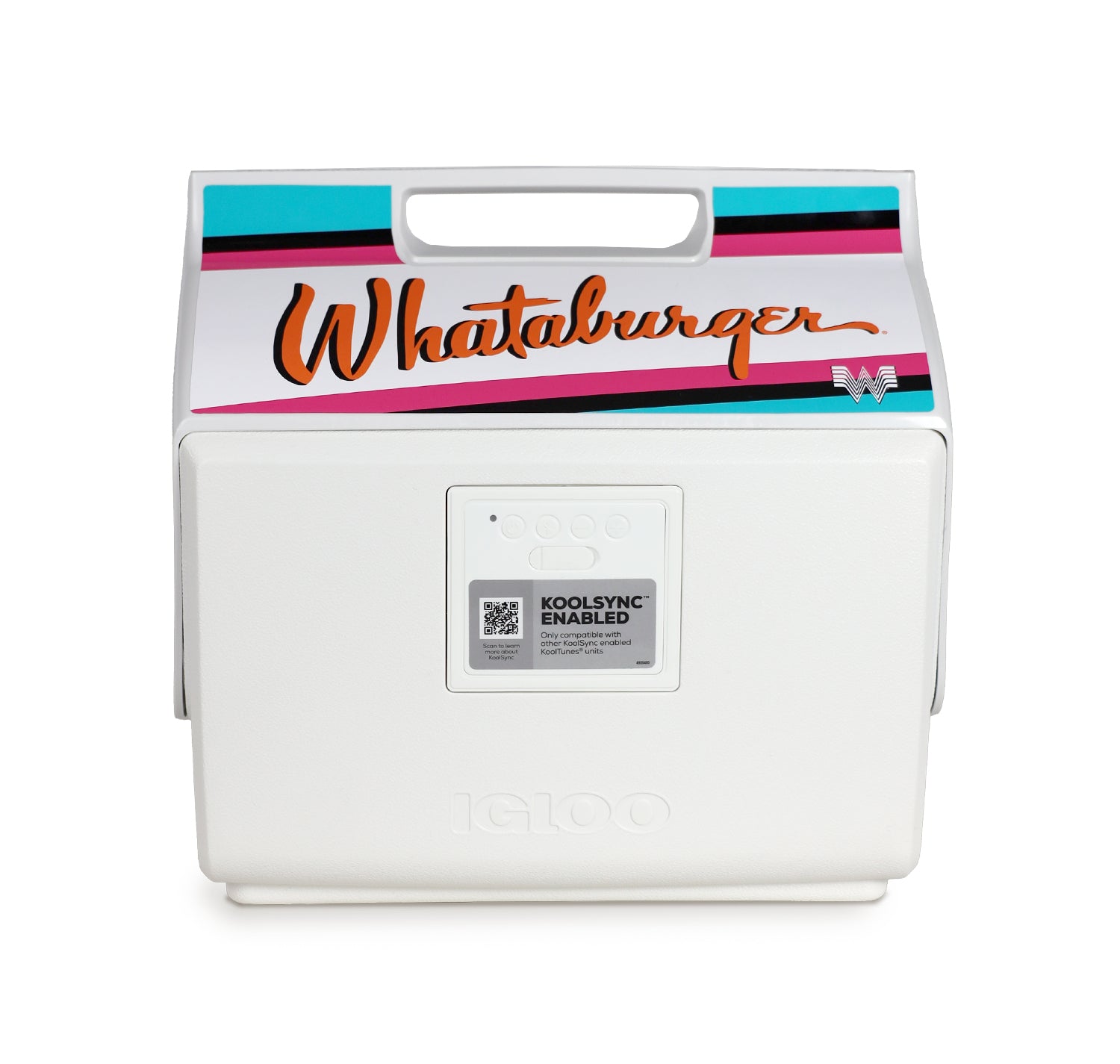 It’s a cooler. It’s a boombox. It’s a blast from the past! We collaborated with our friends at Igloo to bring you the Whataburger Igloo KoolTunes, a Playmate cooler with built-in speakers — the party-perfect cooler! It has a retro look and wireless Bluetooth connectivity, weather-resistant exterior, extended playtime and more!