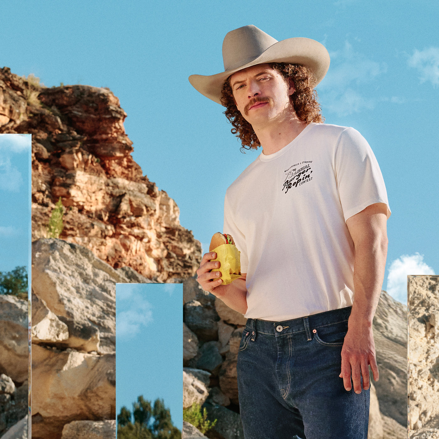 Introducing the limited-edition Sendero x Whataburger collab. Welcome to the 75th Annual Burger Ropin’ Contest. Fastest clean run wins. Clock stops when your tray is empty. Extra marks for triple meat, chocolate shakes, and large french fries. Penalties for stealin’ the table tents, pullin’ the tomatoes off your burger, and not gettin’ all the trash in the bin. Best of luck to ya.