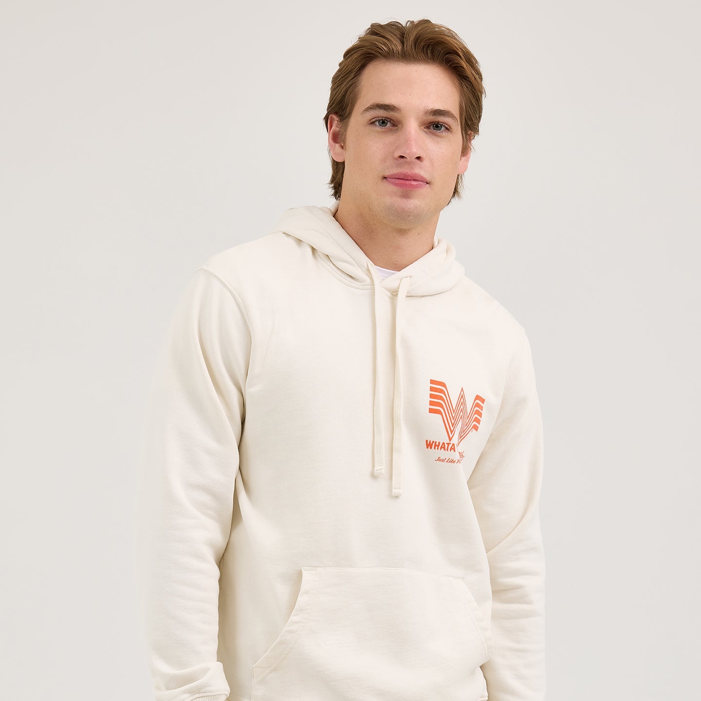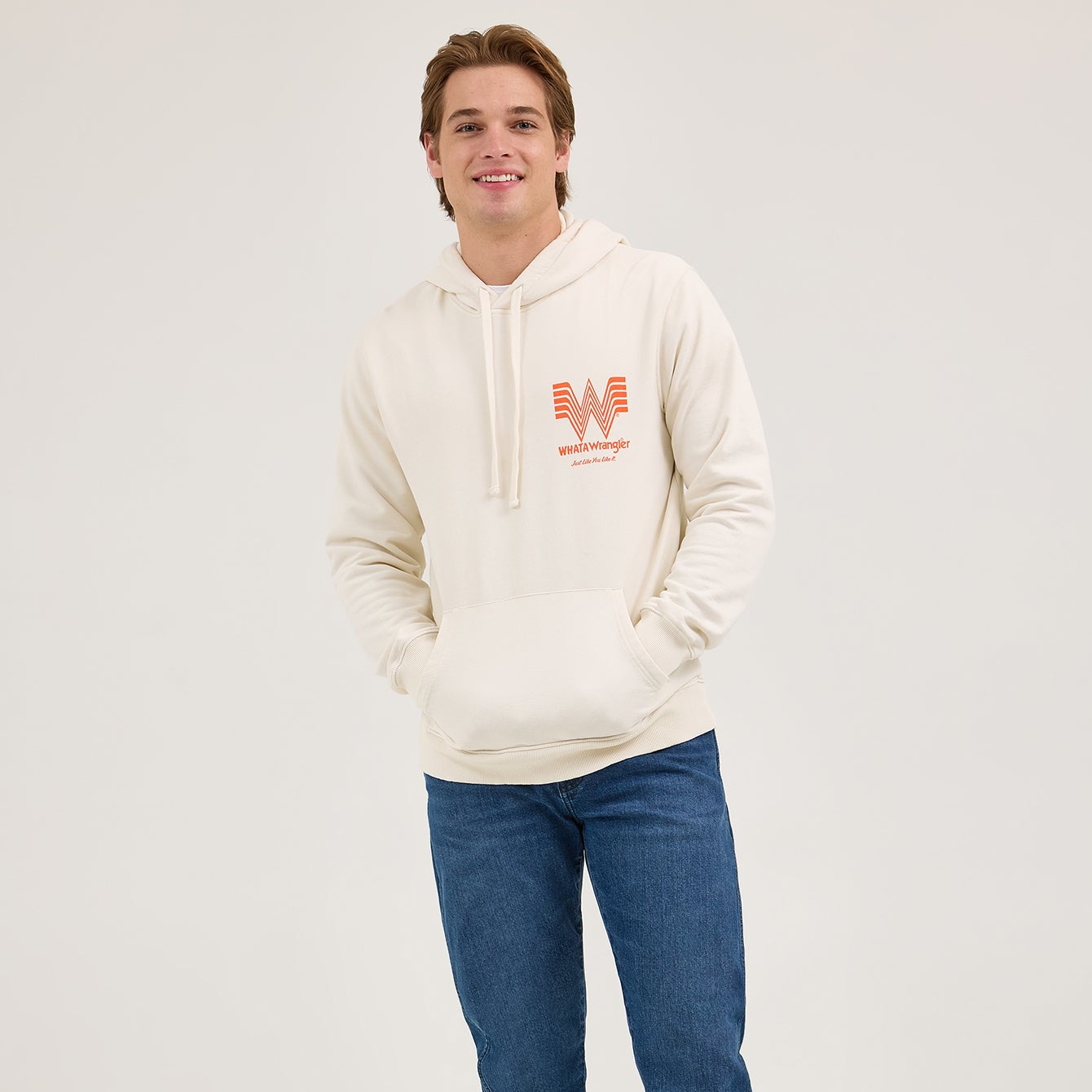 Cozy up the cowboy way with this limited-edition Wrangler® x Whataburger® Men’s Hoodie. Blending two of your favorite names in denim and food, you’ll be reaching for this hoodie on cooler nights spent under the rodeo lights or for late night bites at your favorite burger joint. It’s crafted from a comfortable cotton blend, complete with ribbed knit trim, a drawstring at the hood, and a kangaroo pocket. Plus, it comes with a mash-up of your favorite logos at the chest and a retro-inspired graphic of ropers riding ahead of the iconic “flying W” sign.