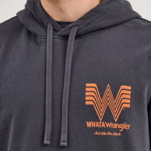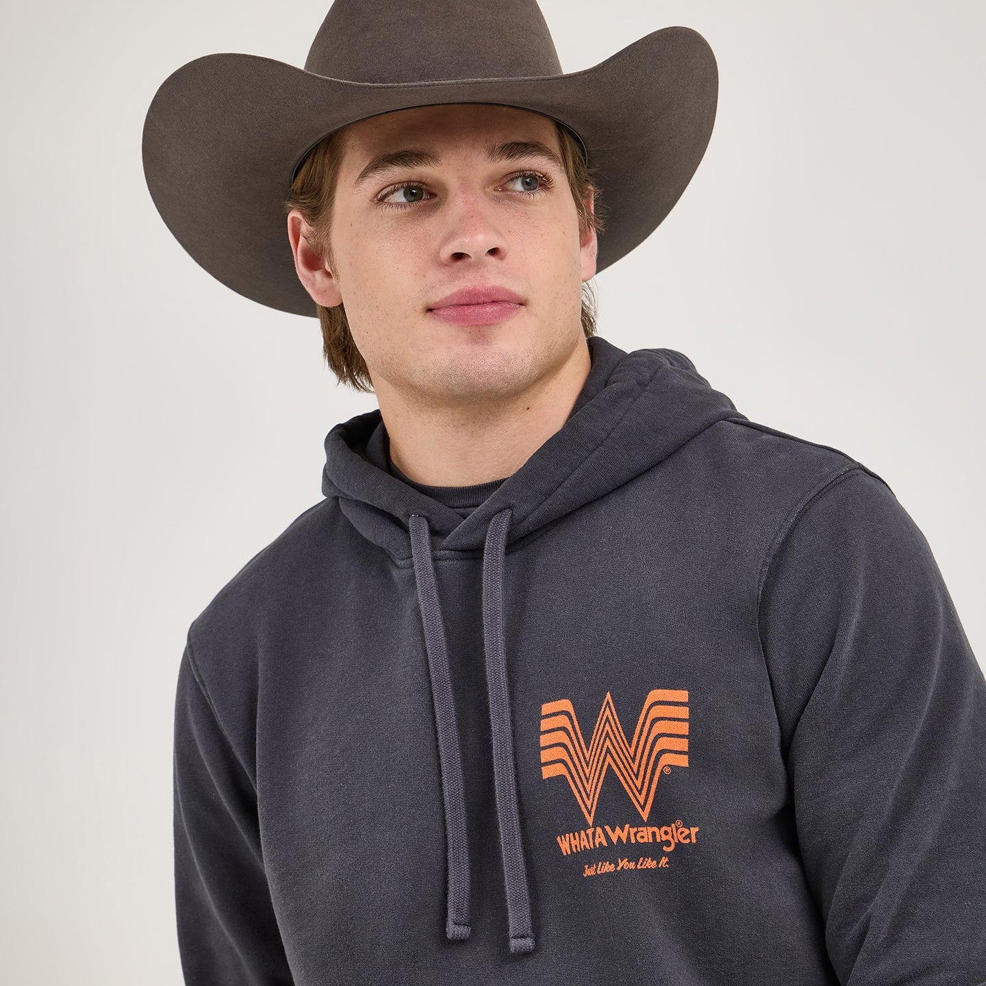 Cozy up the cowboy way with this limited-edition Wrangler® x Whataburger® Men’s Hoodie. Blending two of your favorite names in denim and food, you’ll be reaching for this hoodie on cooler nights spent under the rodeo lights or for late night bites at your favorite burger joint. It’s crafted from a comfortable cotton blend, complete with ribbed knit trim, a drawstring at the hood, and a kangaroo pocket. Plus, it comes with a mash-up of your favorite logos at the chest and a retro-inspired graphic of ropers riding ahead of the iconic “flying W” sign.