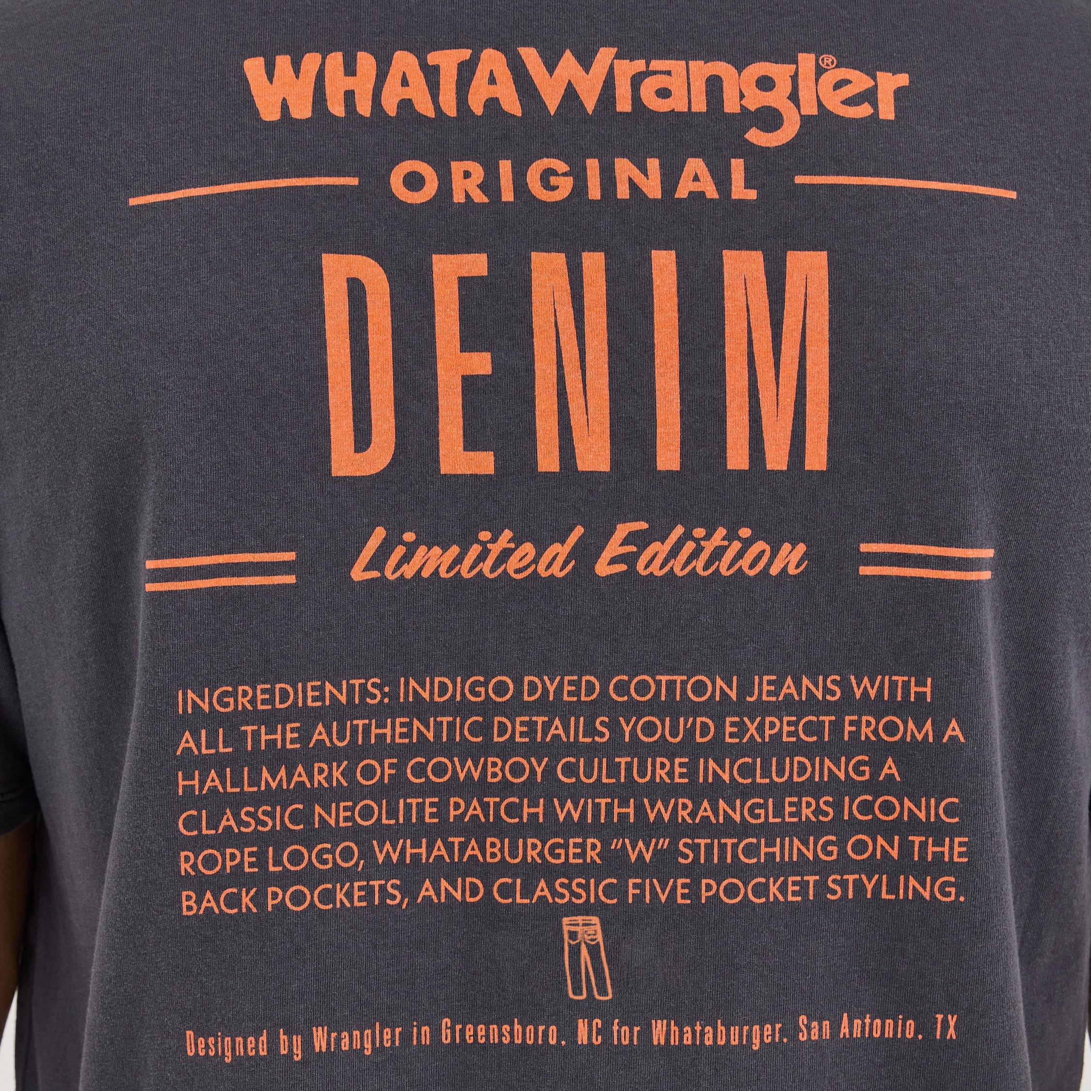 Great denim and mouthwatering burgers—just like you like it. The Wrangler® x Whataburger® Men’s Ingredient T-Shirt lays out everything that goes into making such a sizzling collaboration. It comes with a co-branded logo at the chest with the “flying W” of your favorite burger chain. Across the back, in an ode to the famous Fancy and Spicy Ketchup, you’ll find a long, printed list of ingredients for a look that’s as fresh as it gets.